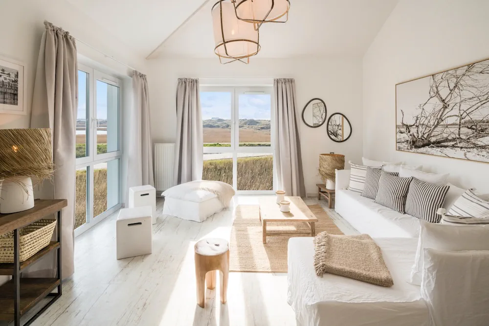 Verteilt auf drei Häuser bieten insgesamt 103 stylische Zimmer und Suiten gemütlichen Komfort mit besonderen Extras – von der Jever Suite mit eigener Zapfanlage bis zur neu renovierten Beach Motel Suite mit Blick auf Dünen und Strand.