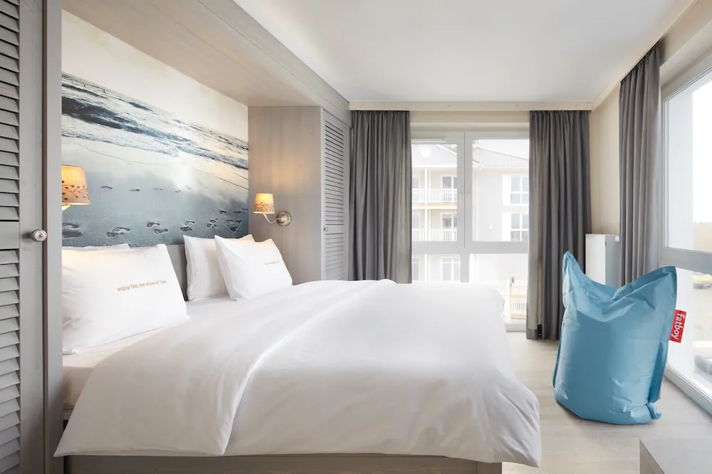 Zwei Restaurants, eine gut bestückte Bar, das Ocean Spa mit Sauna sowie das Private Cinema sorgen für Genuss und Entspannung. Bikes könnt ihr direkt vor Ort ausleihen. Mit dem Wattenmeer und dem 12 km langen Sandstrand vor der Tür ist das Beach Motel der perfekte Ort für eine entspannte Auszeit an der Nordsee.